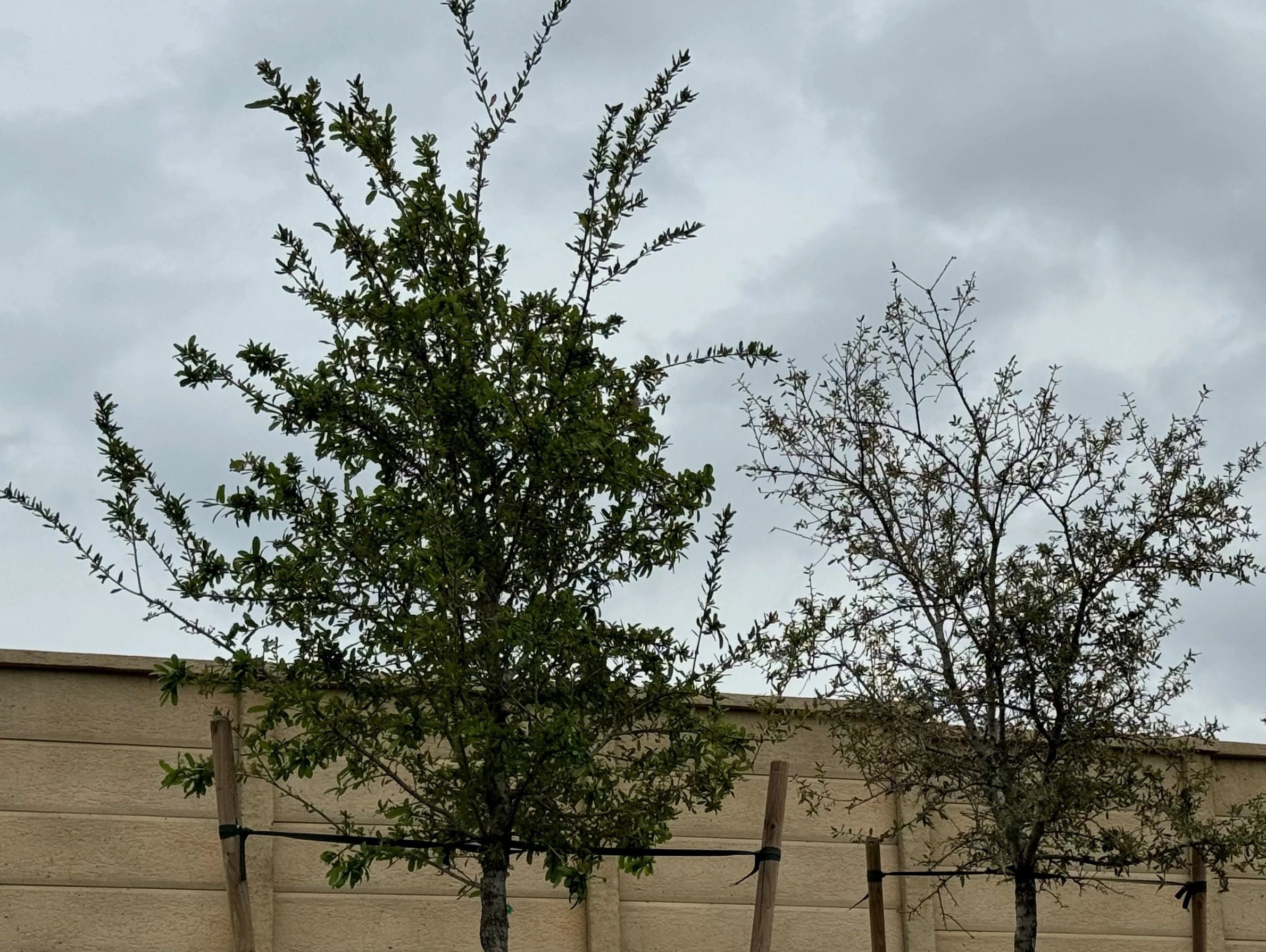 The tree on the Left was treated by Marvelous Pest control. the tree on the right was not, this is three weeks after treatment